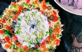 This festive Halloween taco dip will be the talk of the town! And it makes for a great prep ahead option to help save you some time.