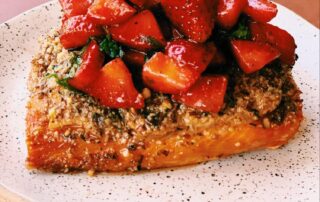 A light and refreshing 12 minute meal that is perfect for your summer nights. Air fried Italian cream cheese salmon topped with a fresh strawberry mint bruschetta.