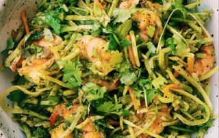 An easy 10 minute, one pan meal that needs to be added to your weeknight meal rotation, pesto shrimp "pasta."