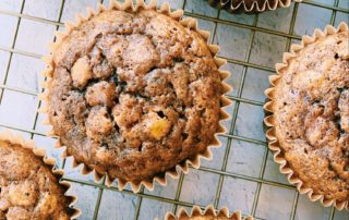 Coffee and maple peanut butter banana muffins for a delicious grab and go breakfast option for the week.