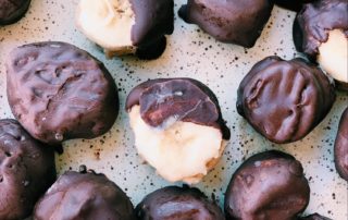Gone Bananas over these vegan date caramel stuffed frozen banana chocolate bites, the perfect summer time treat.