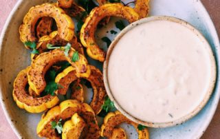 Delicata Squash Chips With Siete Foods blanco “cheese”